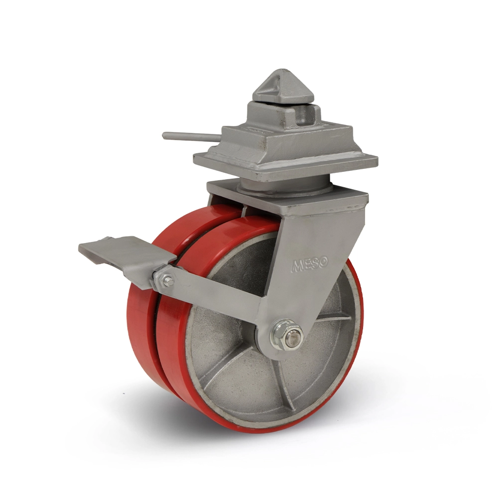 Geremd zeecontainer wiel met topplaat - ISO - 300mm - 4500kg