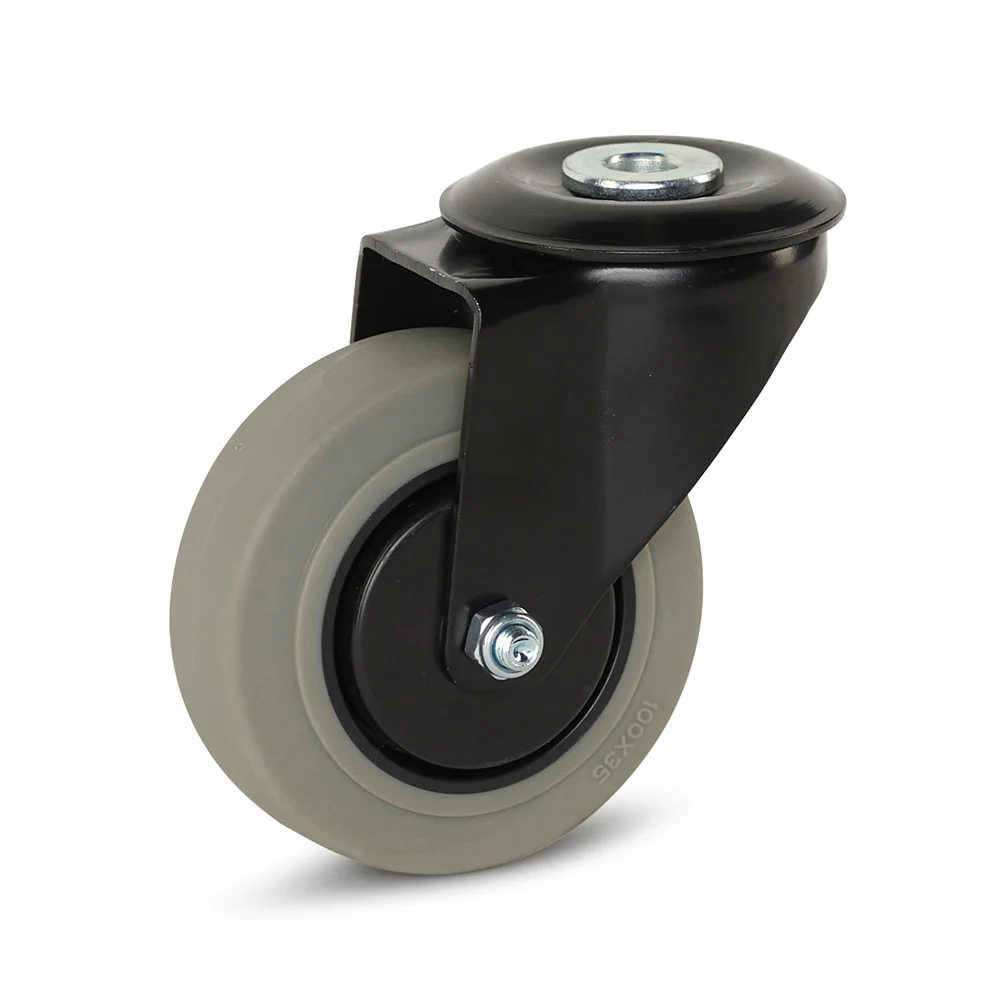 Grijs Rubber zwenkwiel zwarte behuizing met centraal gat - 100mm - 150kg