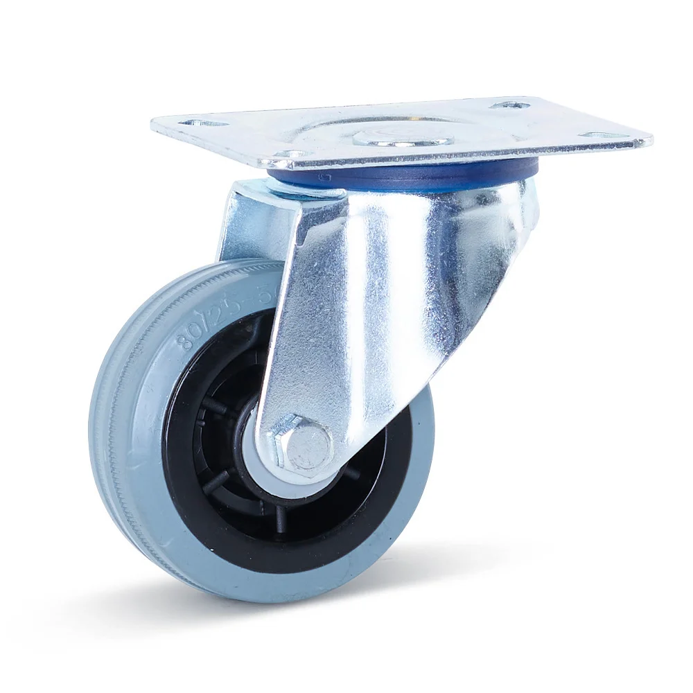Grijs rubber zwenkwiel met topplaat - 80mm - 60kg - Streeploos