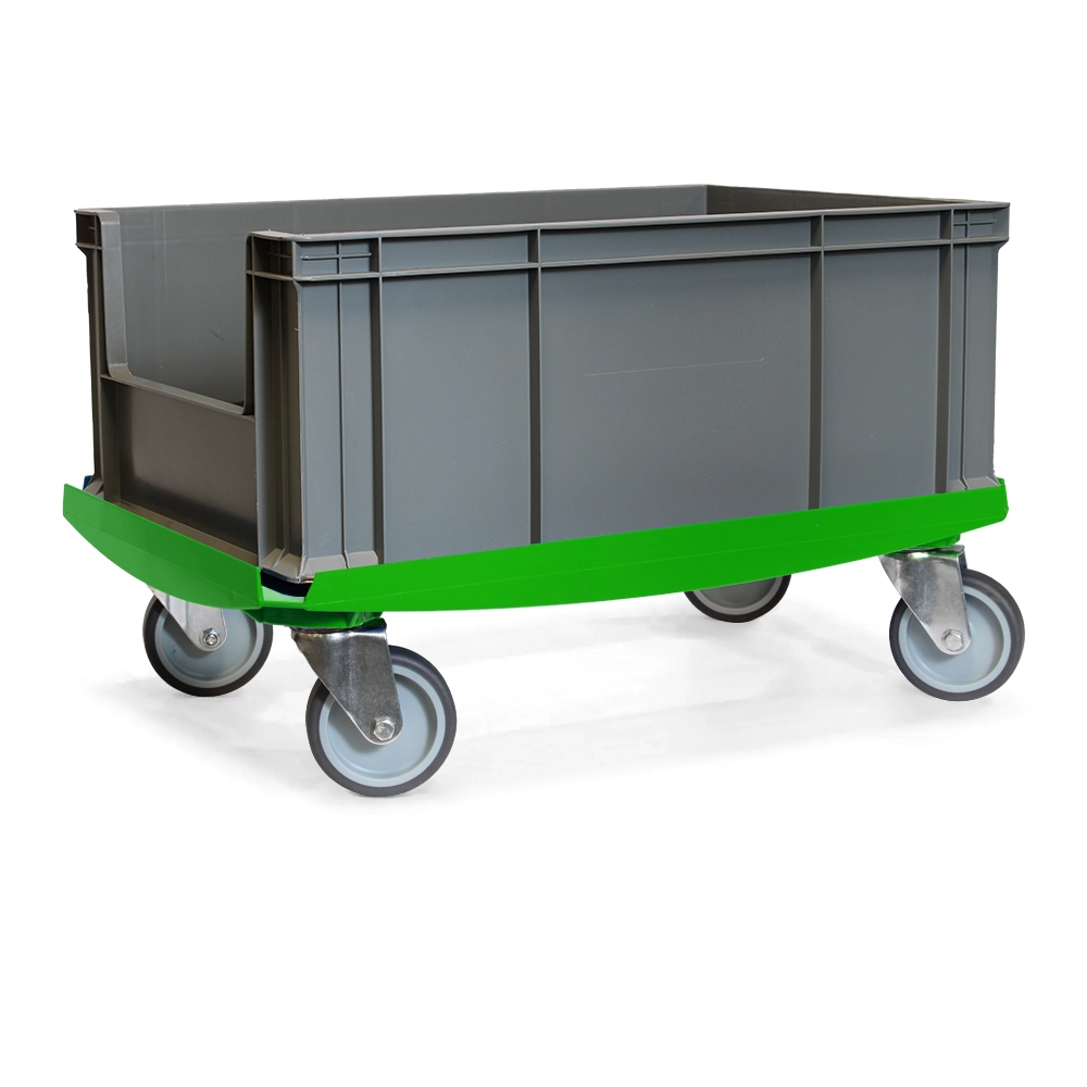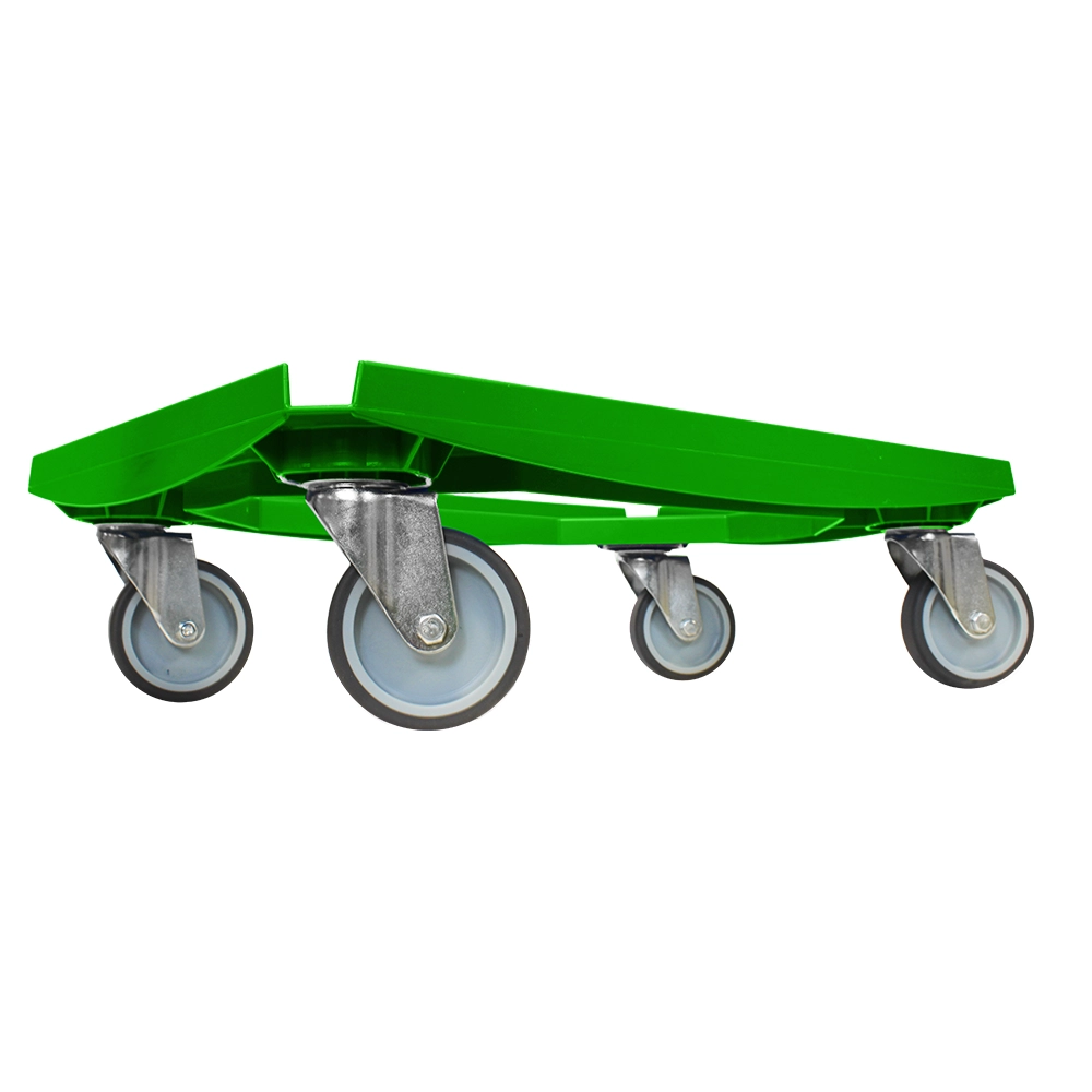 Groene onderwagen met een draagvermogen van 375kg en vier TPR zwenkwielen voor soepele mobiliteit.