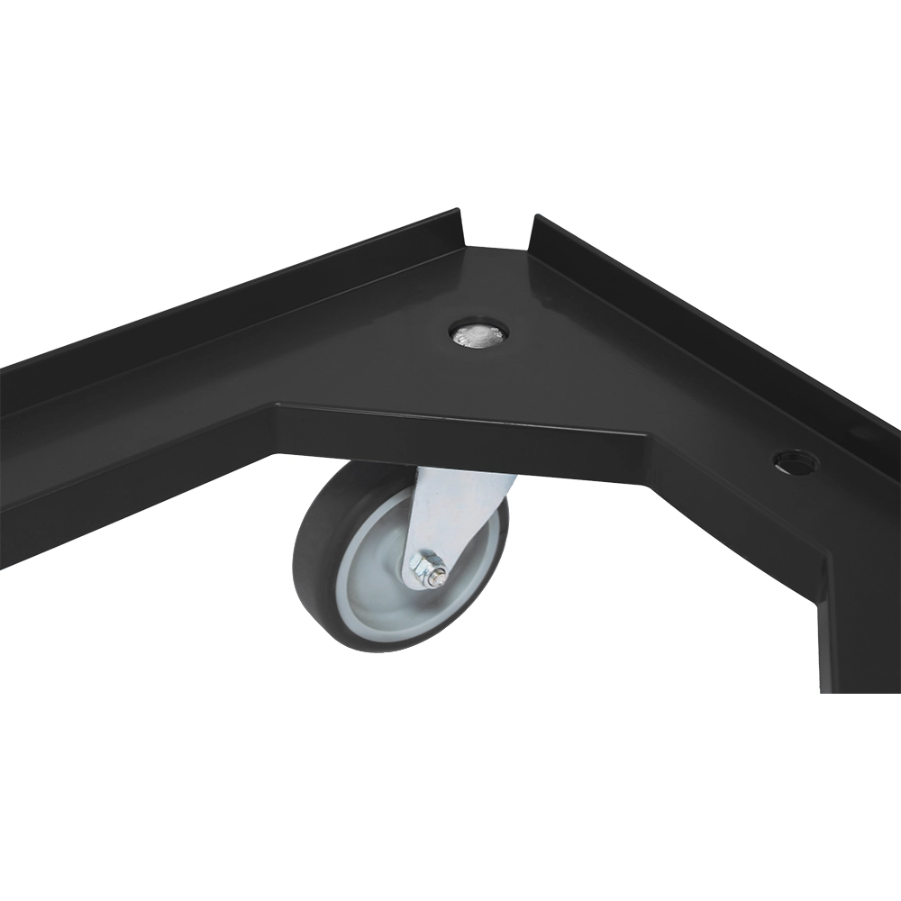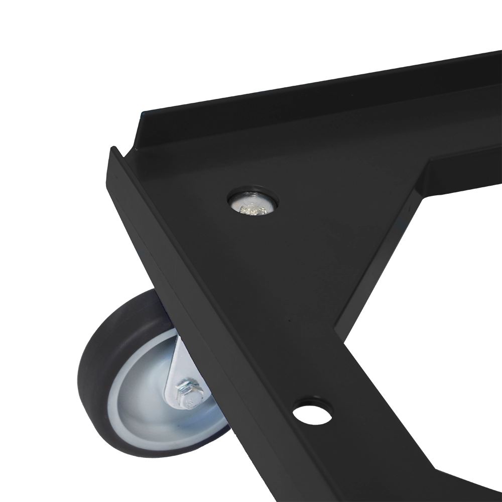 Zwarte onderwagen met vier TPR zwenkwielen, ontworpen voor zware ladingen tot 375kg en moeiteloos transport.