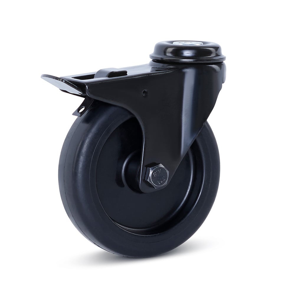 Meubel zwenkwiel zwart geremd 100mm - Centraal gat - 90kg