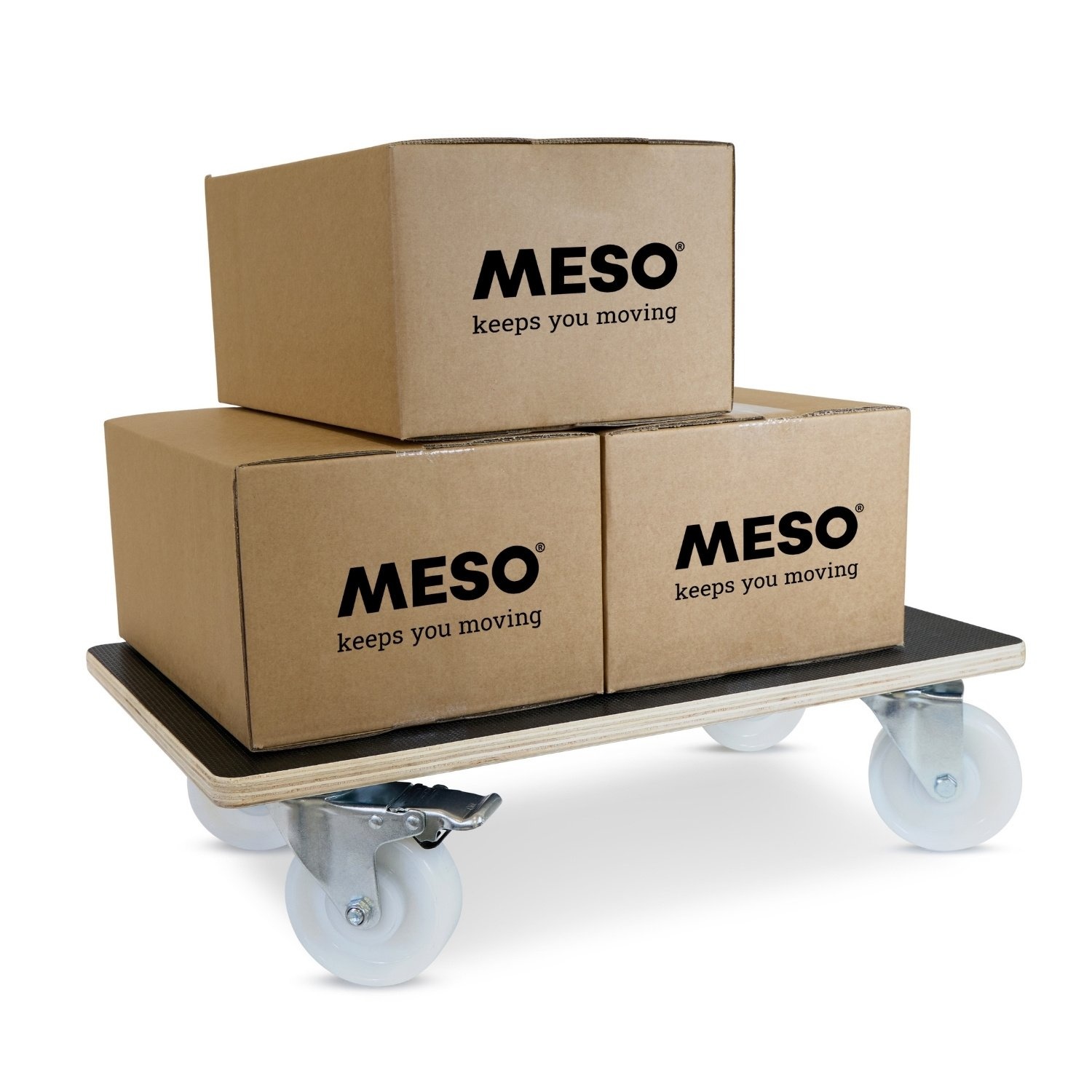Meubelroller met slijtvaste nylon wielen, twee geremde zwenkwielen, 575mm x 350mm en een draagvermogen van 400kg.