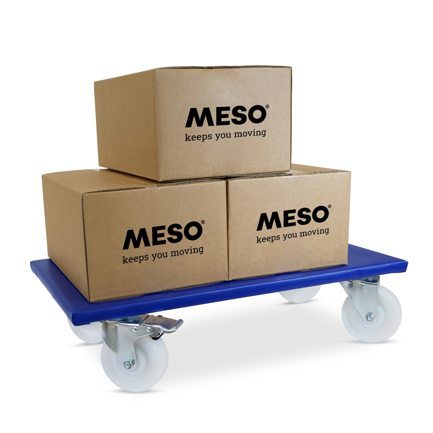 Meubelroller met slijtvaste nylon wielen, twee geremde zwenkwielen, 600mm x 350mm en een draagvermogen van 400kg.