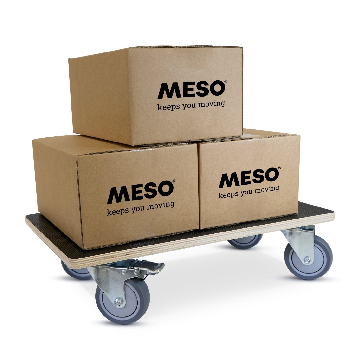 Meubelroller met stille TPR wielen, twee geremde zwenkwielen, 575mm x 350mm en een draagvermogen van 350kg.