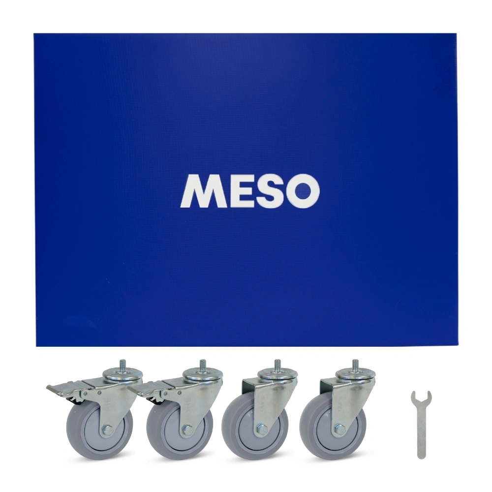 Meubelroller met trillingsdempende rubber wielen, twee geremde zwenkwielen, 800mm x 400mm en een draagvermogen van 350kg.