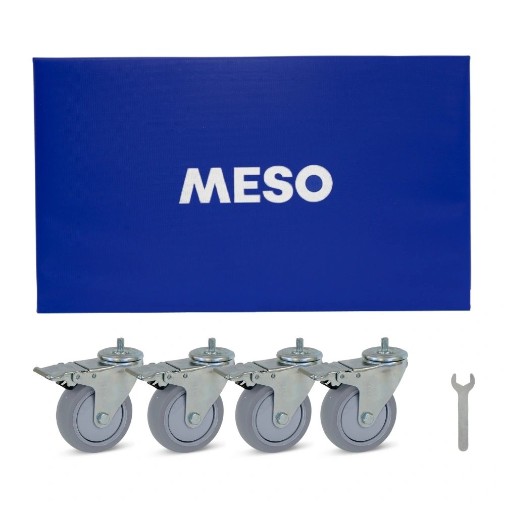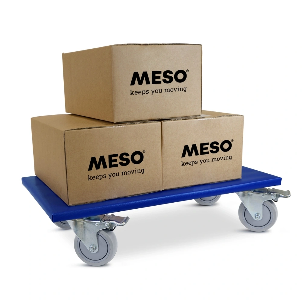 Meubelroller met trillingsdempende rubber wielen, vier geremde zwenkwielen, 600mm x 350mm en een draagvermogen van 350kg.