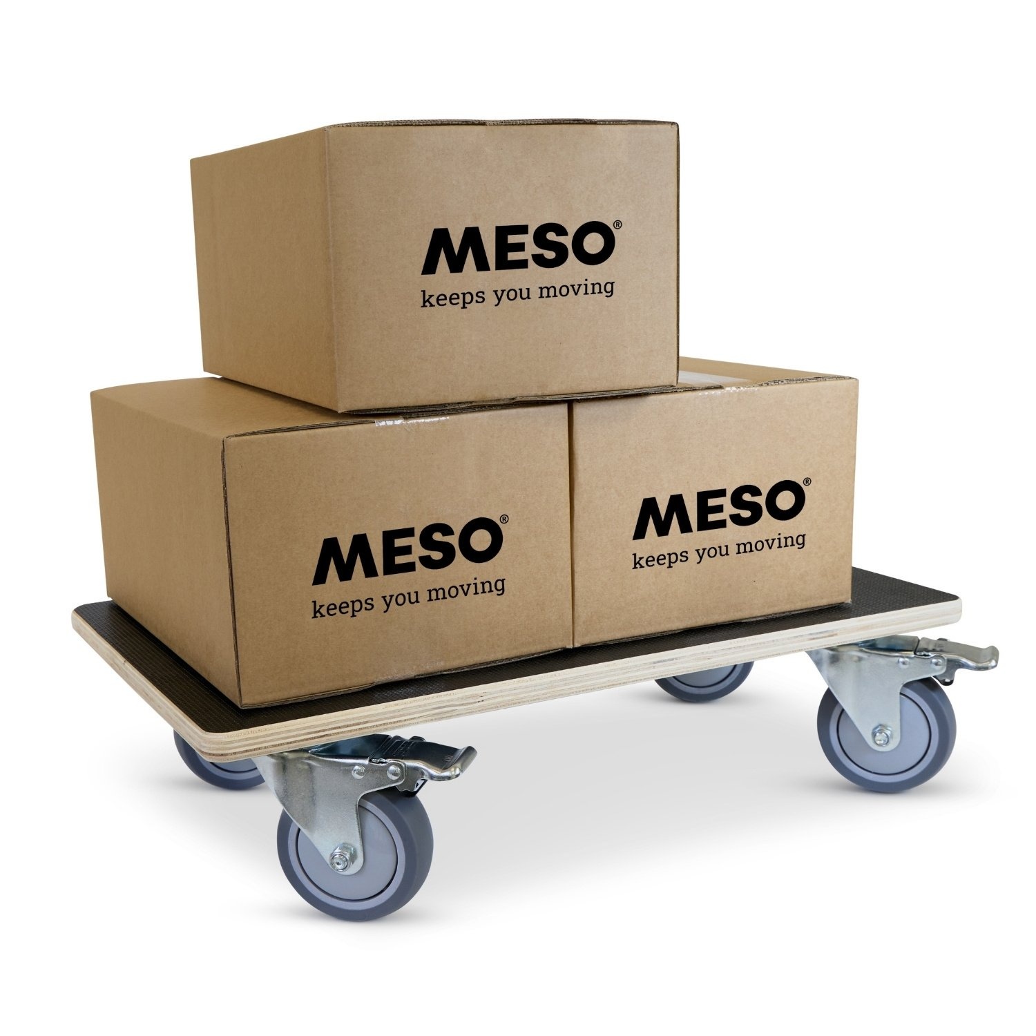 Meubelroller met stille TPR wielen, vier geremde zwenkwielen, 575mm x 350mm en een draagvermogen van 350kg.