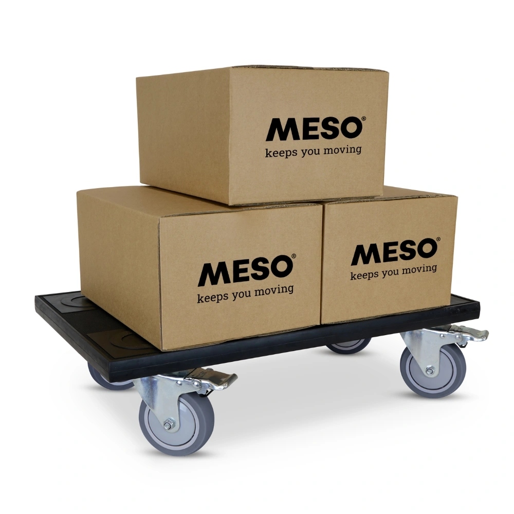 Meubelroller met stille TPR wielen, vier geremde zwenkwielen, 580x350mm en een draagvermogen van 350kg.