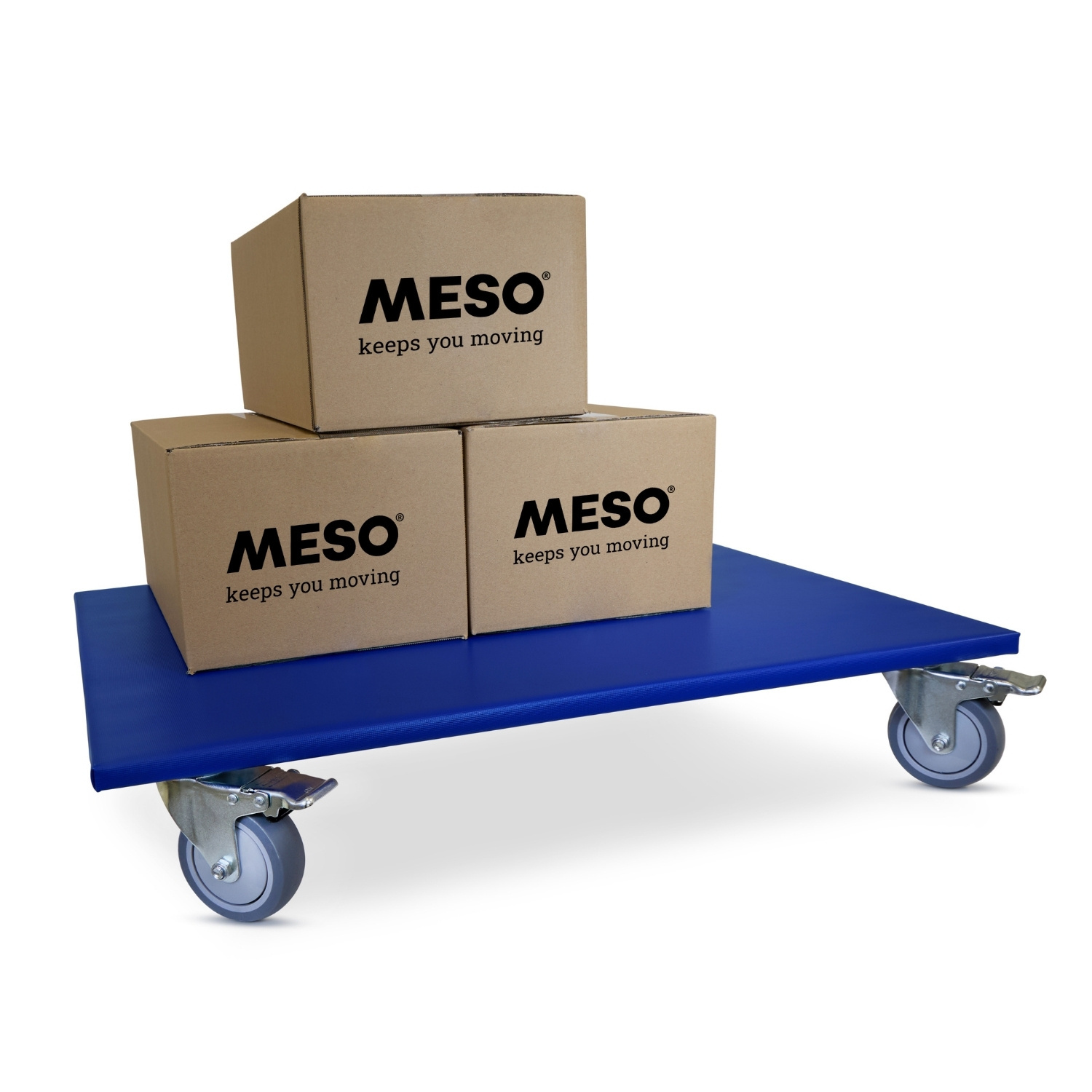 Meubelroller met stille TPR wielen, vier geremde zwenkwielen, 800mm x 600mm en een draagvermogen van 350kg.
