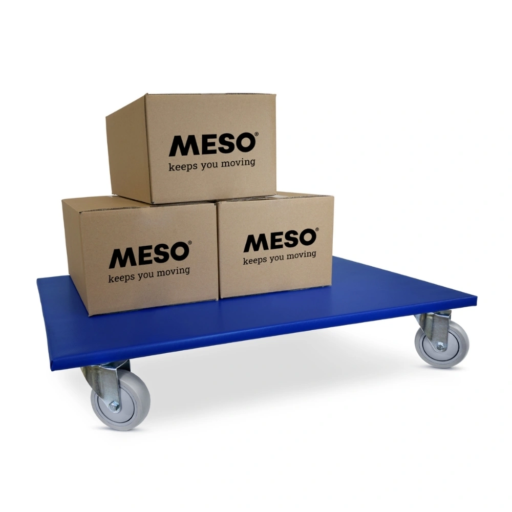 Meubelroller met trillingsdempende rubber wielen, zwenkwielen zonder rem, 800x600mm en een draagvermogen van 350kg.