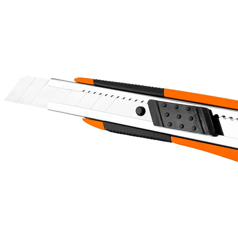 Neo Breekmes is een 18mm hobbymes dat bekend staat om zijn duurzame en scherpe lemmet, ideaal voor diverse snijtaken. Het beschikt over een comfortabele, ergonomische handgreep voor betere grip, wat de veiligheid en precisie van de gebruiker verhoogt. Het lemmet is gemakkelijk te vervangen, waardoor continu efficiënt gebruik mogelijk is zonder frequent herscherpen. Het is geschikt voor zowel professioneel als persoonlijk gebruik, waardoor het een veelzijdig gereedschap is in elke gereedschapskist. Het robuuste ontwerp van het mes zorgt voor duurzaamheid en betrouwbaarheid, wat de waarde voor het geld benadrukt. Over het algemeen is de Neo Breekmes een zeer functioneel en praktisch hobbymes dat tegemoetkomt aan diverse snijbehoeften.