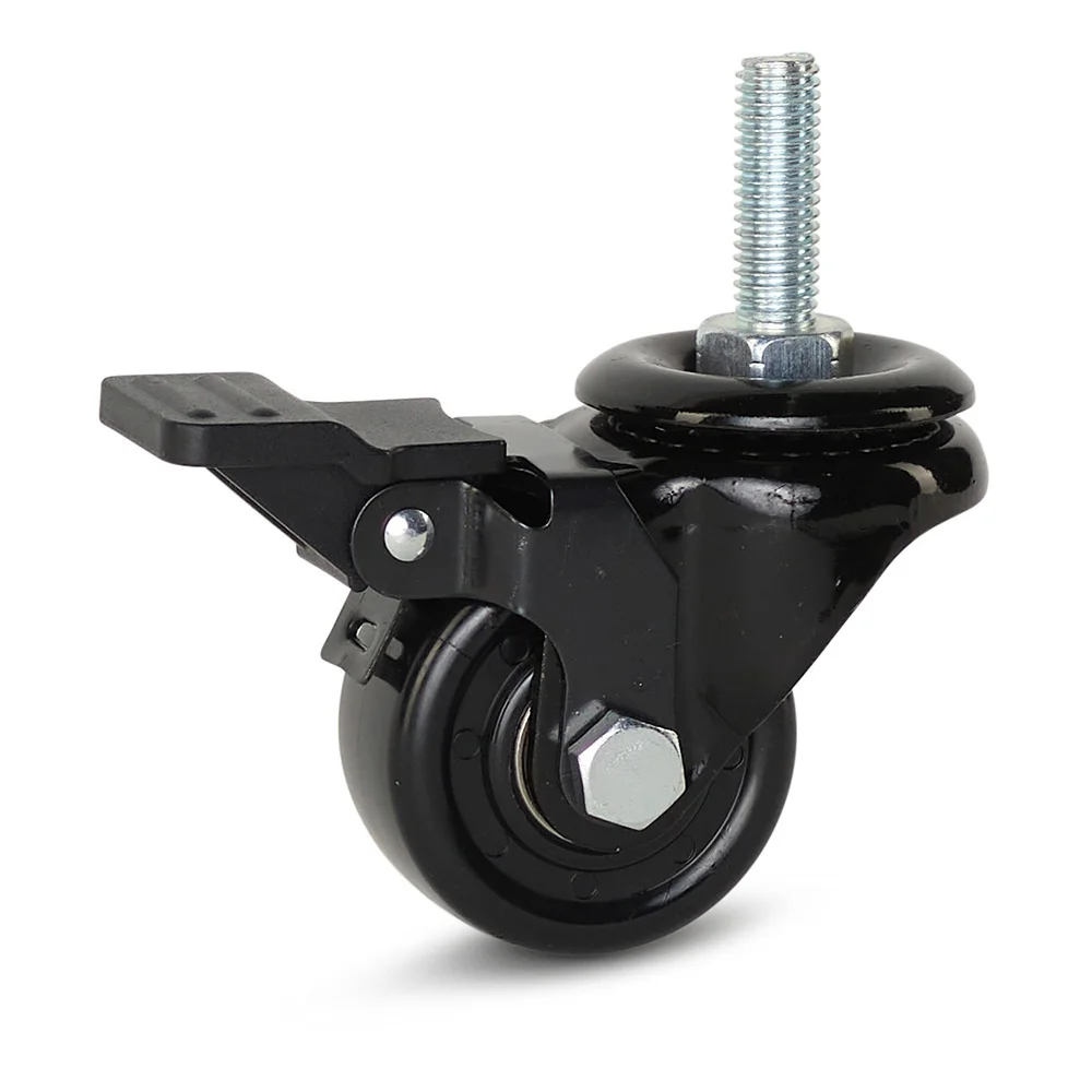 Zwart nylon zwenkwiel geremd met schroefdraad - 50mm - 150kg
