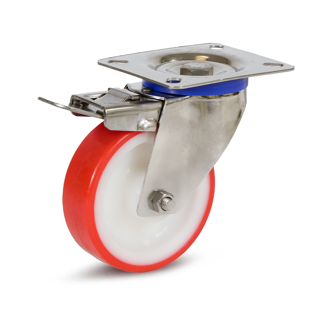 Specificaties voor: PU RVS zwenkwiel geremd met topplaat - 100mm - 120kg - A