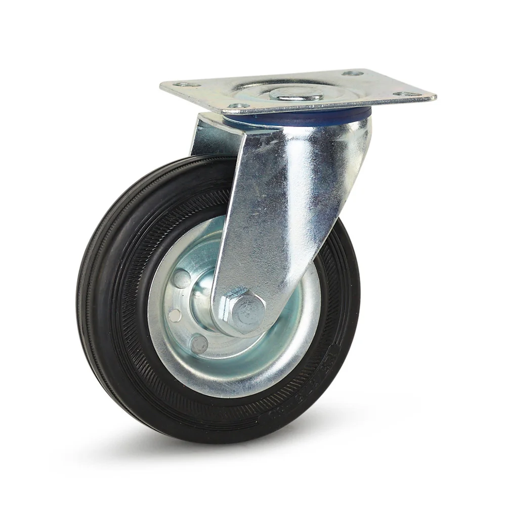 Dit rubberen zwenkwiel heeft een diameter van 125 mm en een draagvermogen van 90 kg.