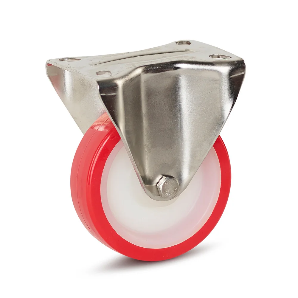RVS wielen met Polyurethaan (PU) wiel zijn geschikt voor oneffen vloeren en drempels. Voor vlakke en harde ondergronden adviseren wij onze Nylon RVS wielen.