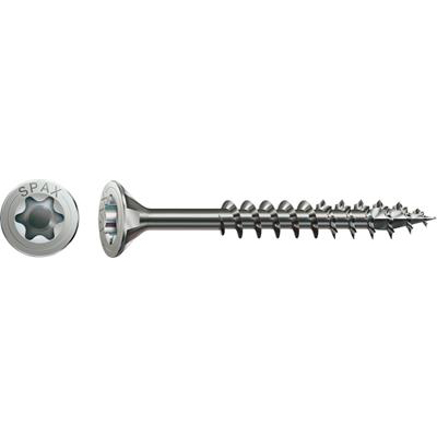 Spax biedt 200 stuks Spaanplaatschroeven aan, met een Torx 20 aandrijving en een platkopschroef ontwerp. Deze schroeven meten 4 x 50mm, hebben een gedeeltelijke schroefdraad en zijn gemaakt van roestvrij staal.