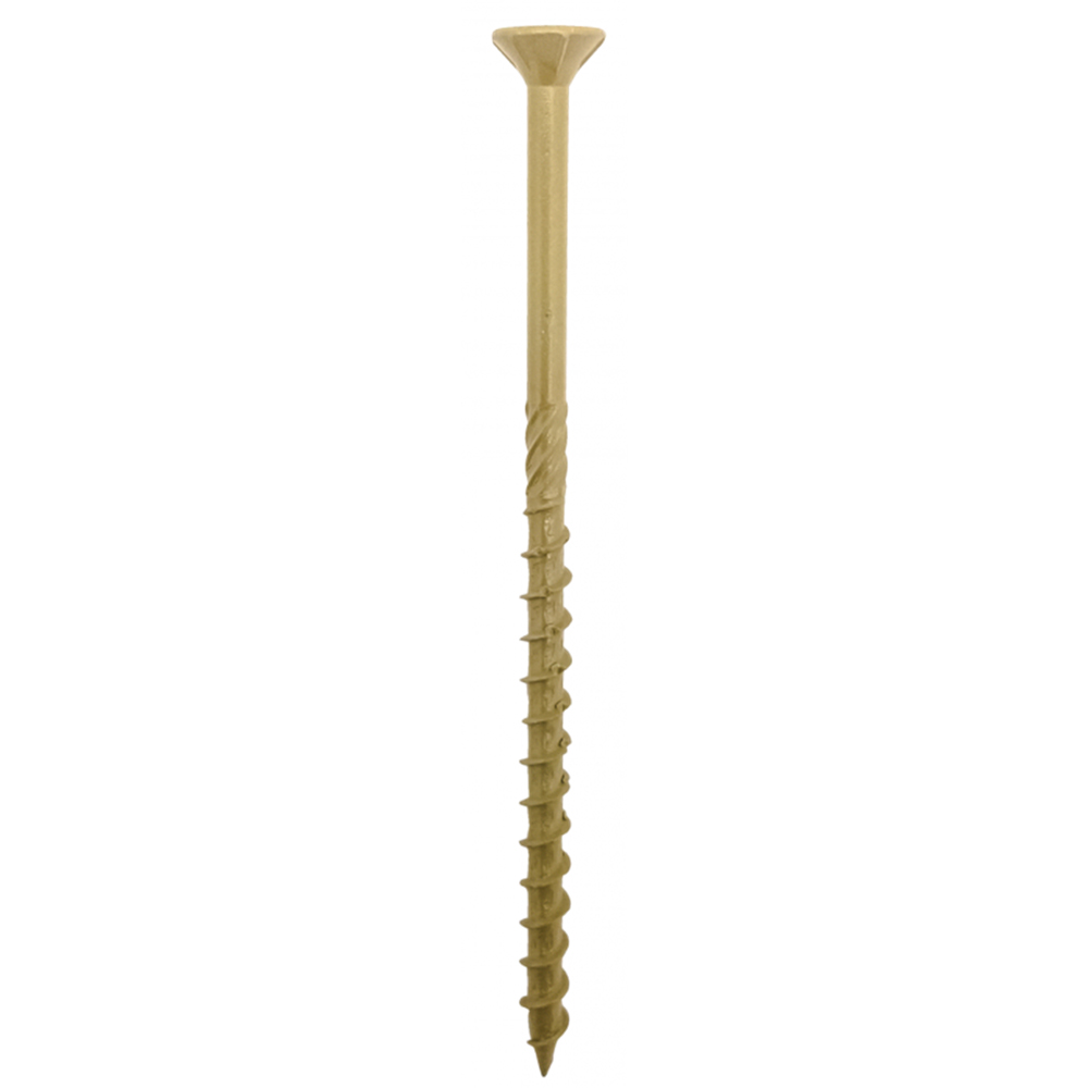 Woodies biedt Ultimate Shield Outdoor Schroeven met Torx 25 en een platte verzonken kop. De schroeven hebben een diameter van 5mm en een lengte van 120mm, met een gedeeltelijke schroefdraad van 70mm. De verpakking bevat 100 schroeven, ontworpen voor buitengebruik, wat duurzaamheid en optimale prestaties garandeert.