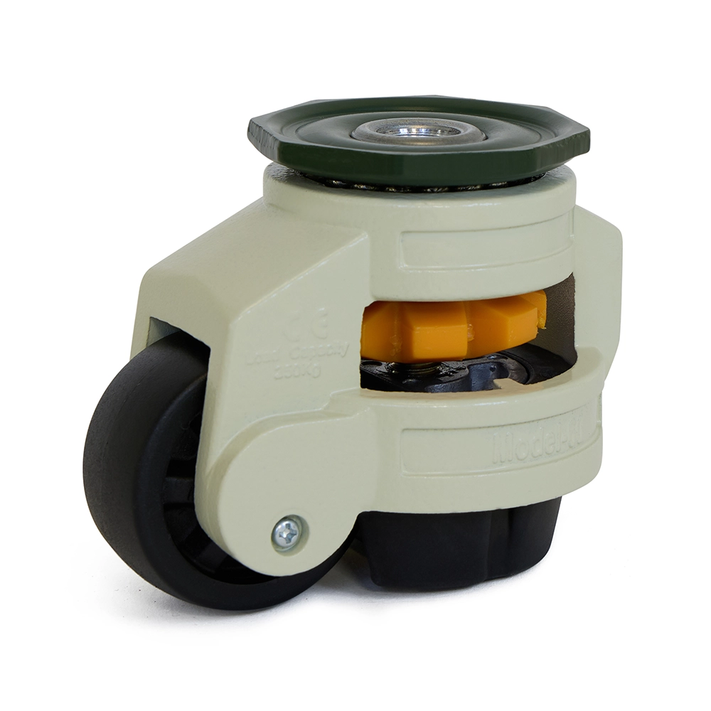 Dit hefzwenkwiel is uitgerust met een praktisch hefmechanisme. Wanneer het wiel wordt opgeheven, komt het volledig los van de grond waardoor de toepassing stabiel blijft staan. Dit maakt het wiel geschikt voor situaties waarin mobiliteit nodig is, maar de constructie ook stevig moet kunnen worden gepositioneerd zonder remfunctie.
