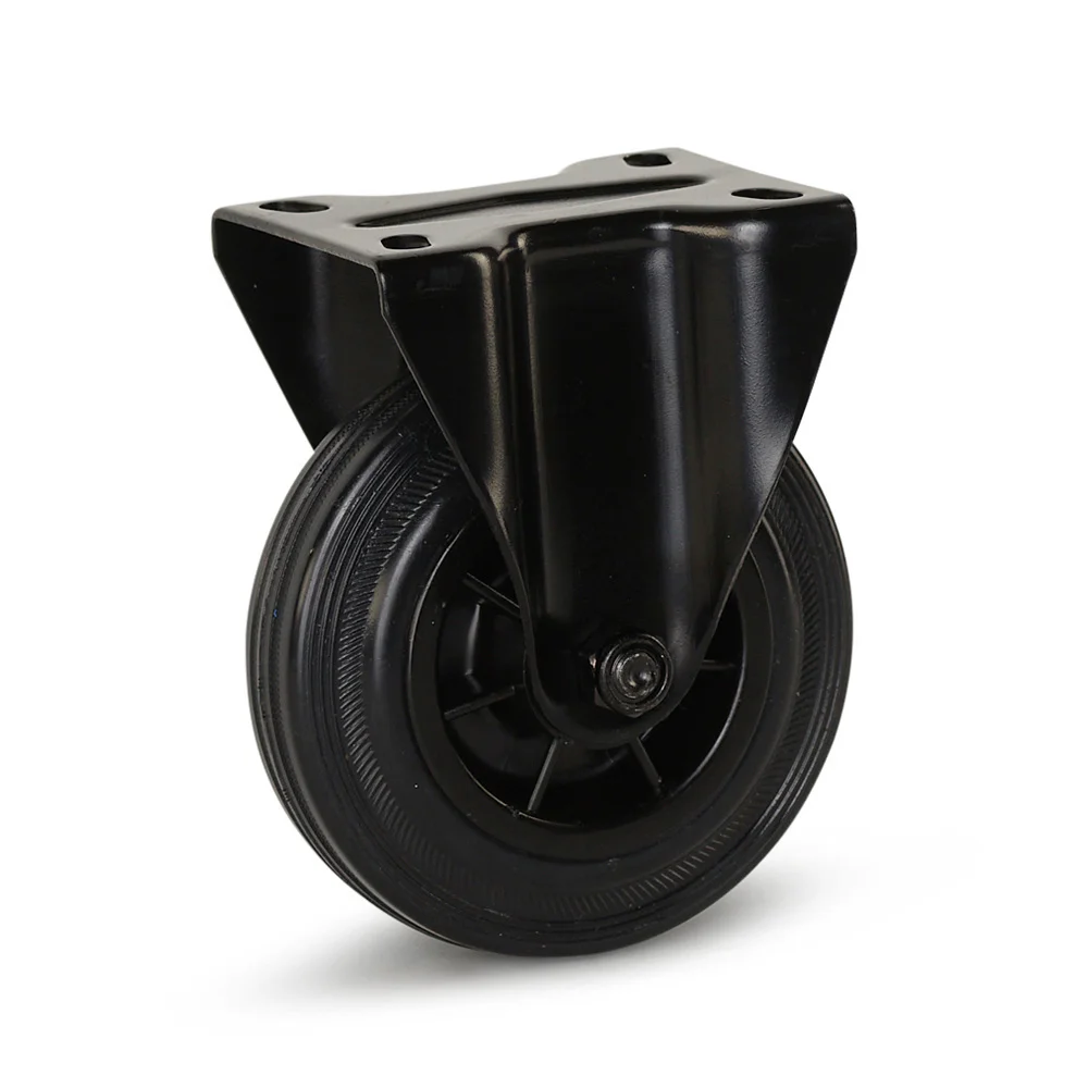Rubber wielen zijn veruit de voordeligste oplossing en hebben goede roleigenschappen op een minder vlakke ondergrond met eventueel drempels (85° Shore A). De wielen zijn normaal slijtvast, geschikt voor temperaturen van -20°C tot +80°C.