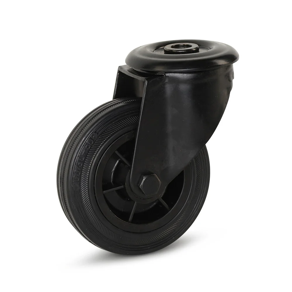 Zwart rubber zwenkwiel met centraal gat - 100mm - 75kg